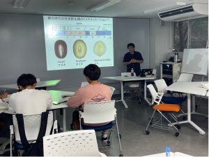 今回は私たちに主に関わってくださっているメインチューターの一人、基盤教育センター・那須浩郎准教授にミニ講義をしていただきました。テーマは「私の研究紹介(考古植物学)」でした。